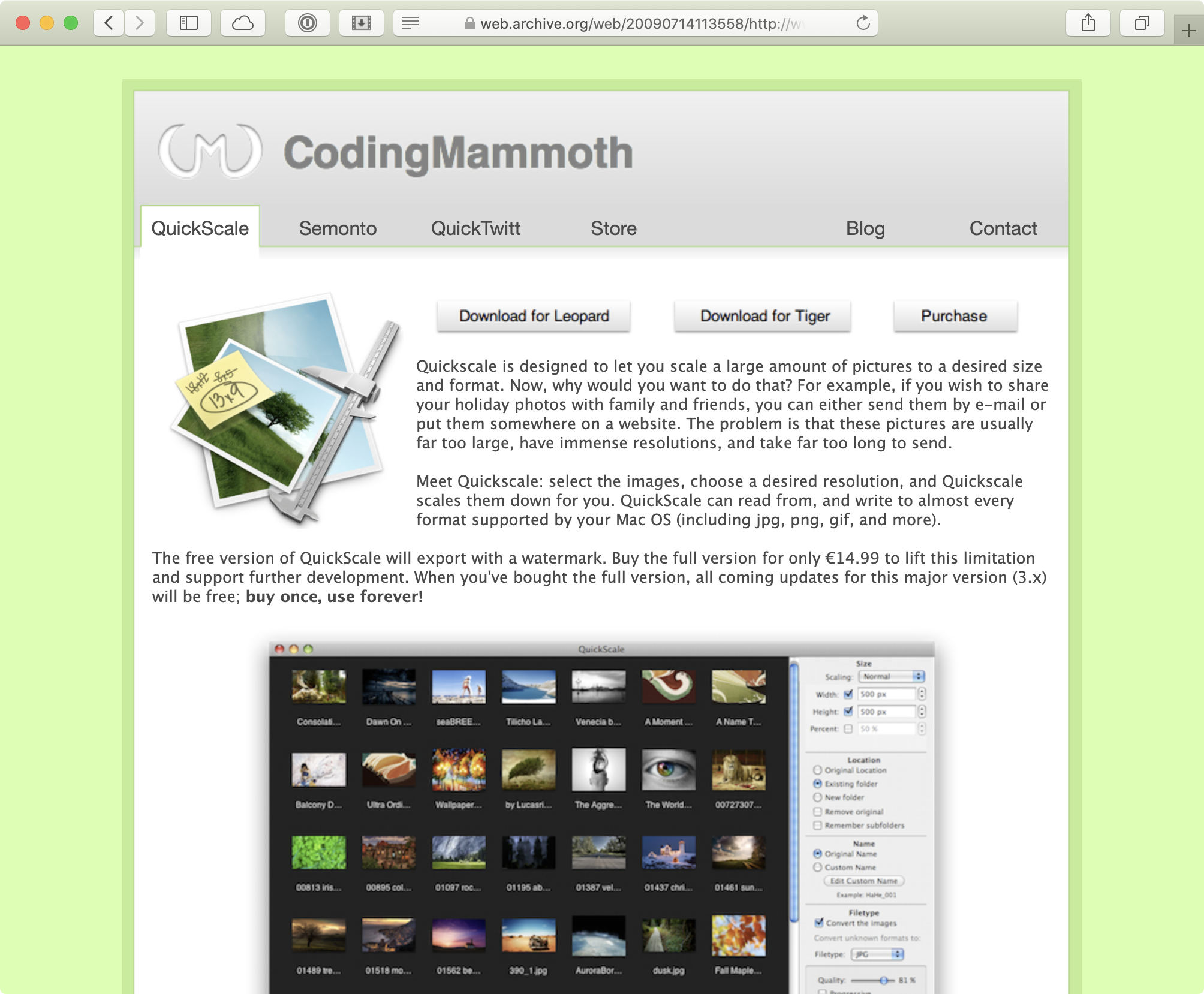 I virtually met Pieter Omvlee, now founder of Sketch, and we started developing together. We did this under the name "Mammoet Software" (translated: Mammoth Software). We created some fancy applications like a flashcard application "Backpack", "DrawIt" and even already QuickScale.